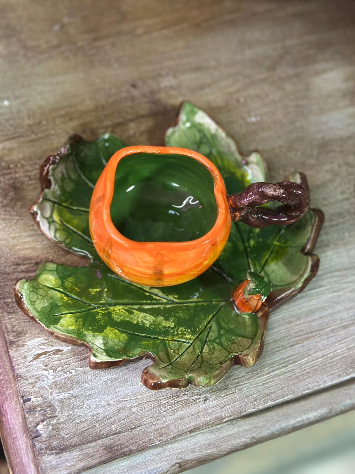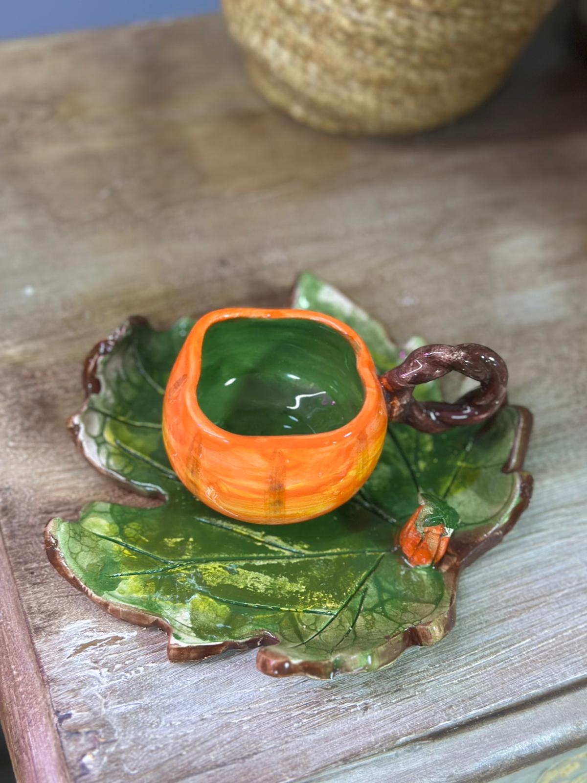 El Yapımı Kabak Figürlü Sonbahar Temalı Seramik Fincan