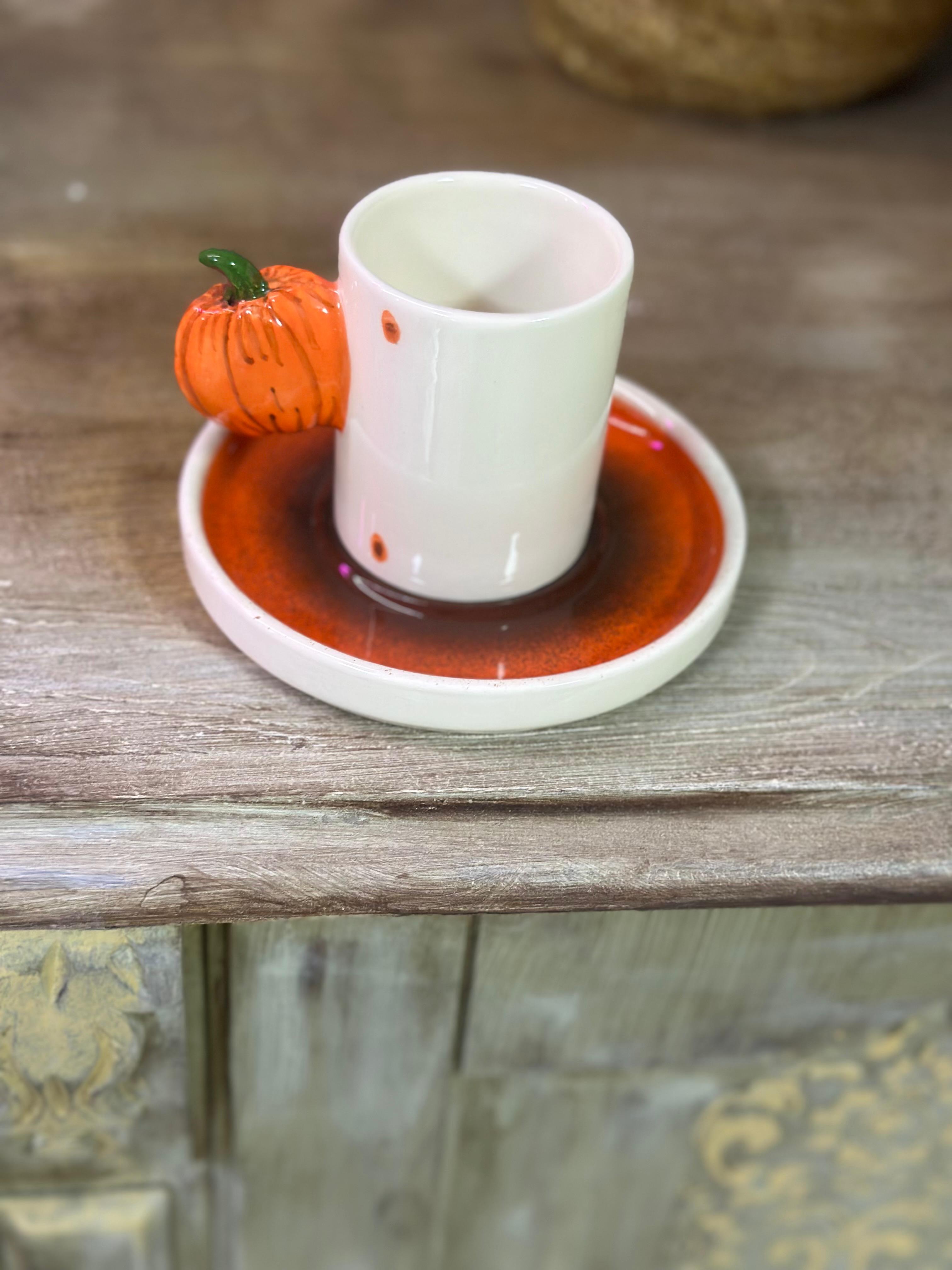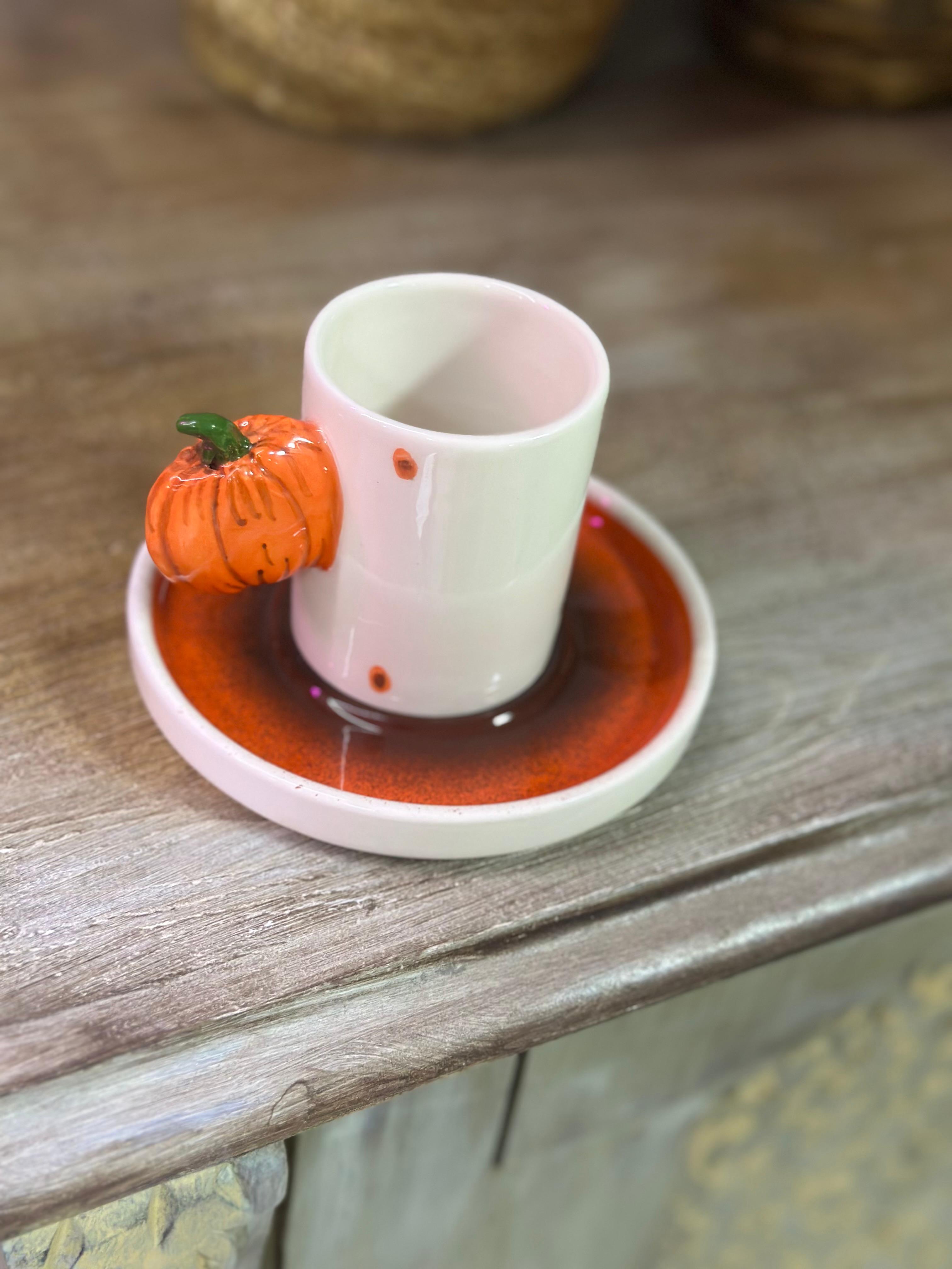 El Yapımı Kabak Figürlü Sonbahar Temalı Seramik Fincan