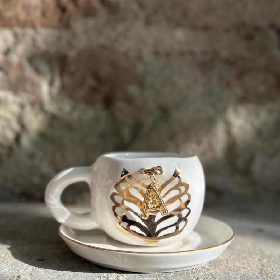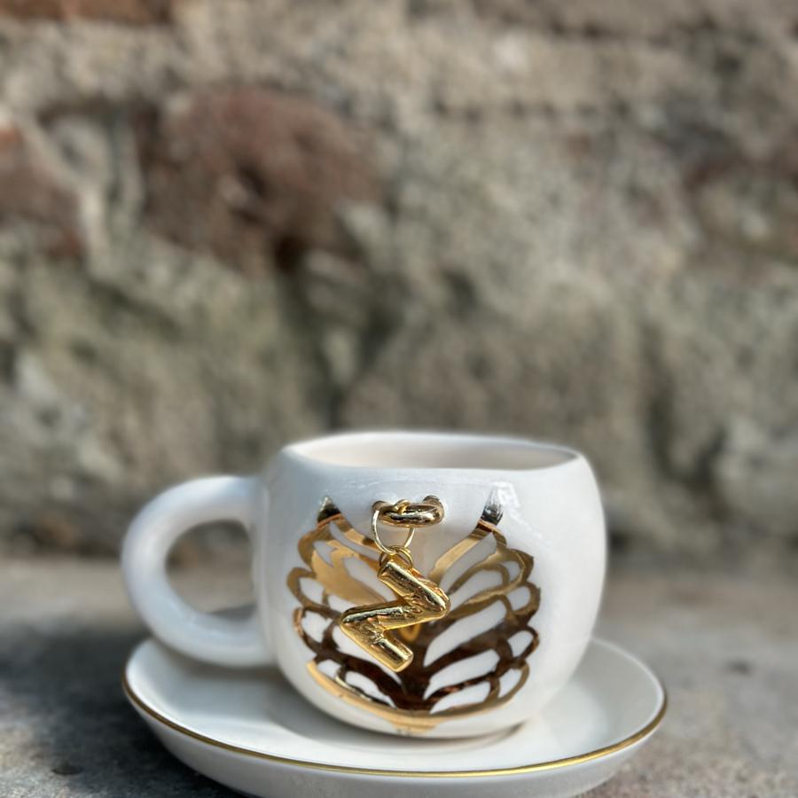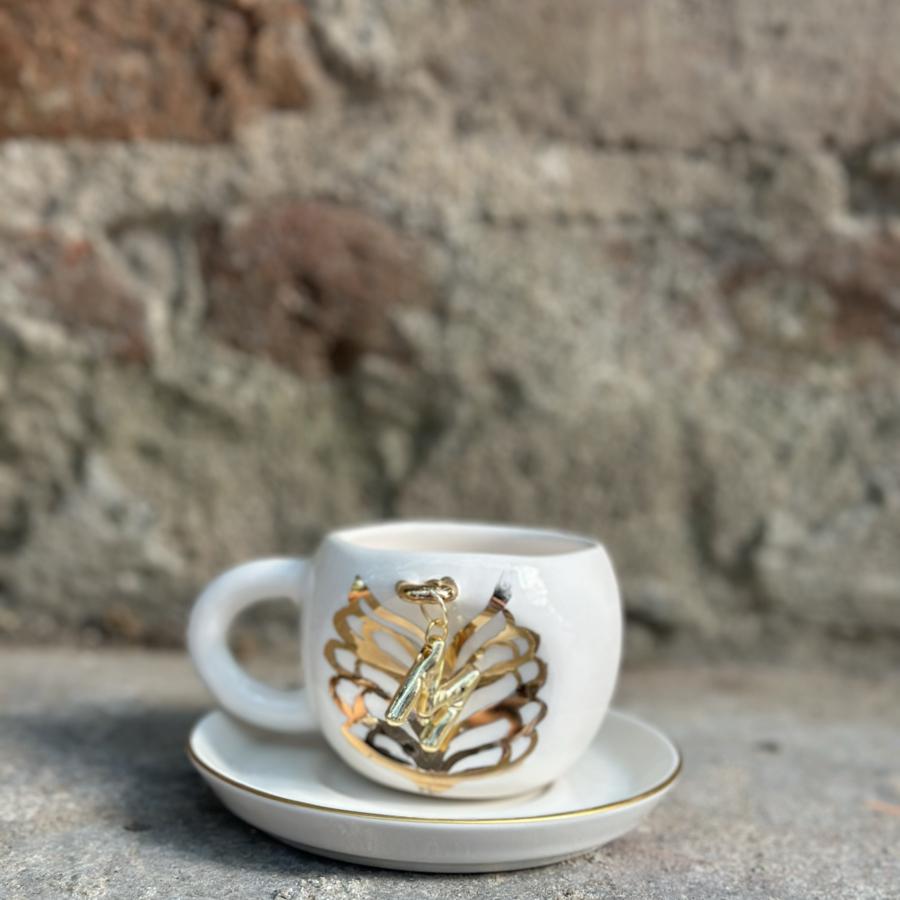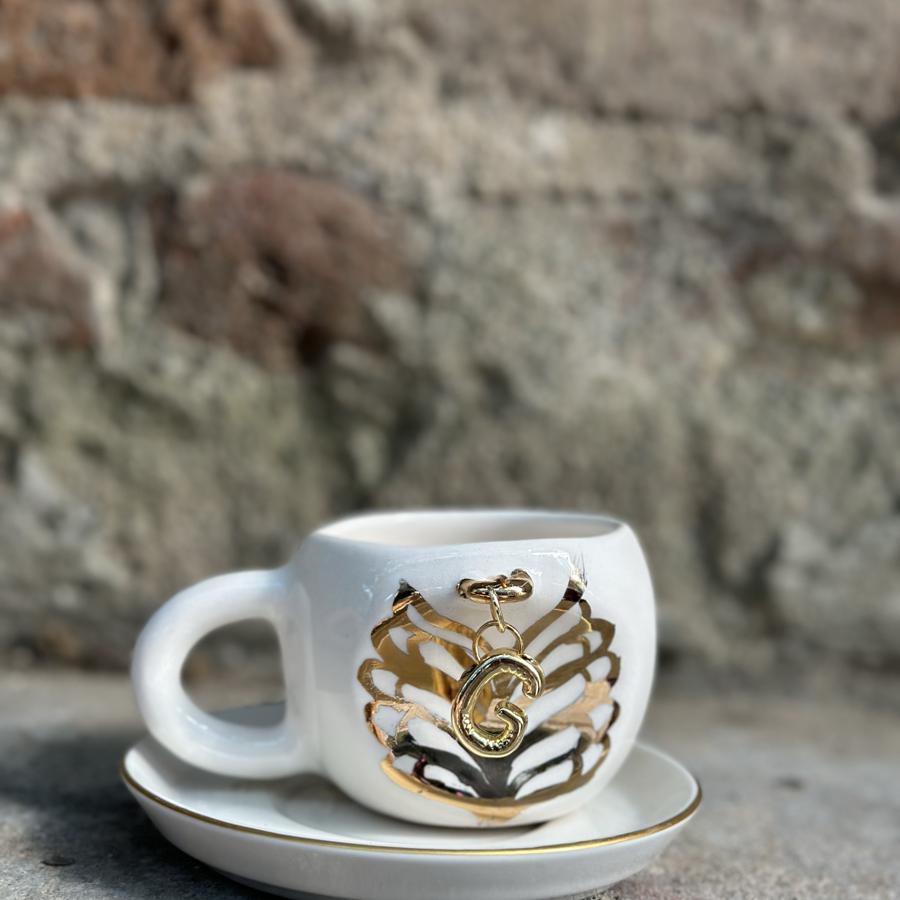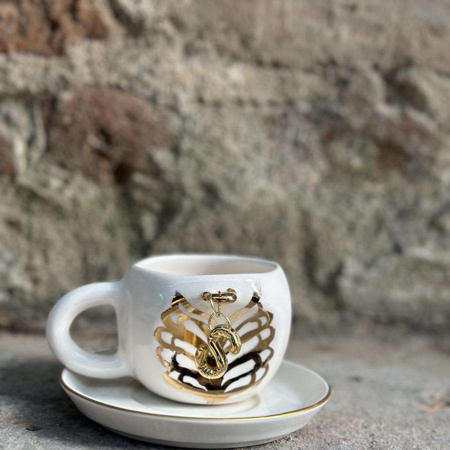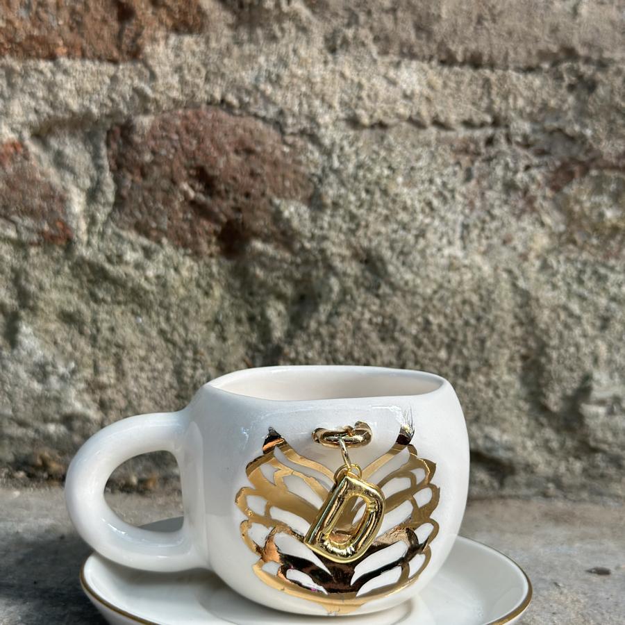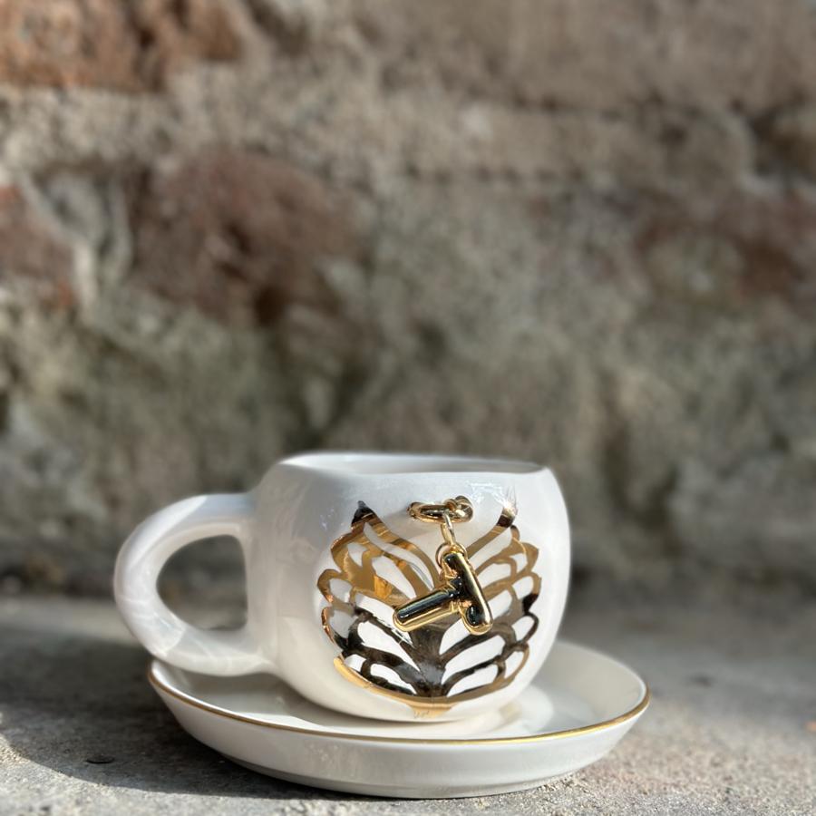 Seramik el yapımı fincan gerçek 24 K altın kullanılmaktadır